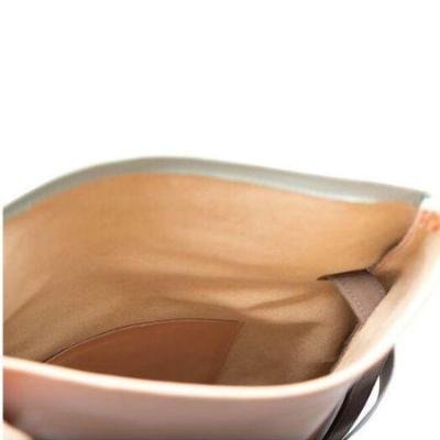 Soft pink leather in one side. Back in light blue leather. Grey elastic. and adjustable straps in Grey Suede. Two inner pockets. Dimensions:  35 x 33 cm.  Adjustable Straps:  70cm – 80cm. With an extra handle strap.  REF. MMBPAO. Made in Portugal
